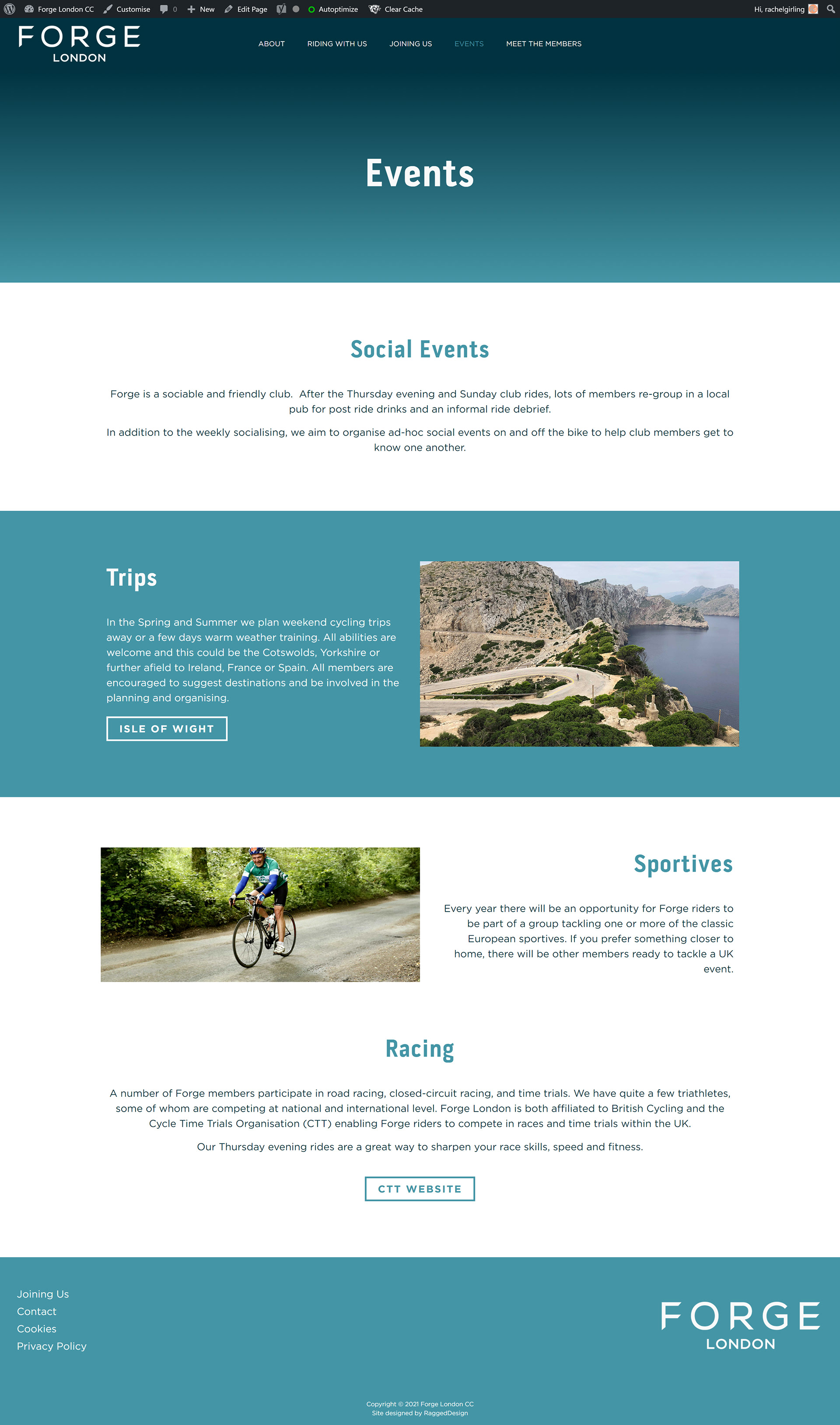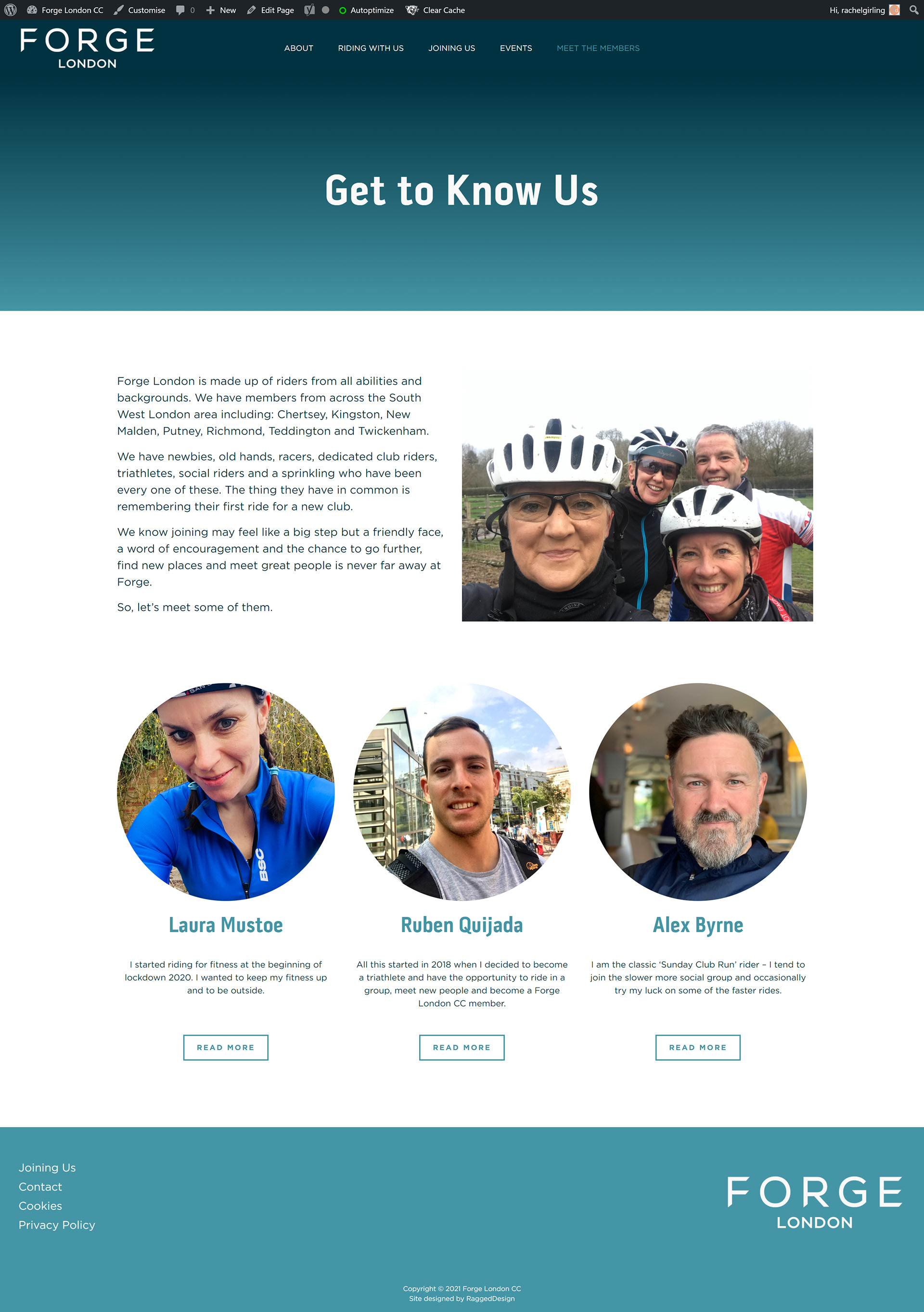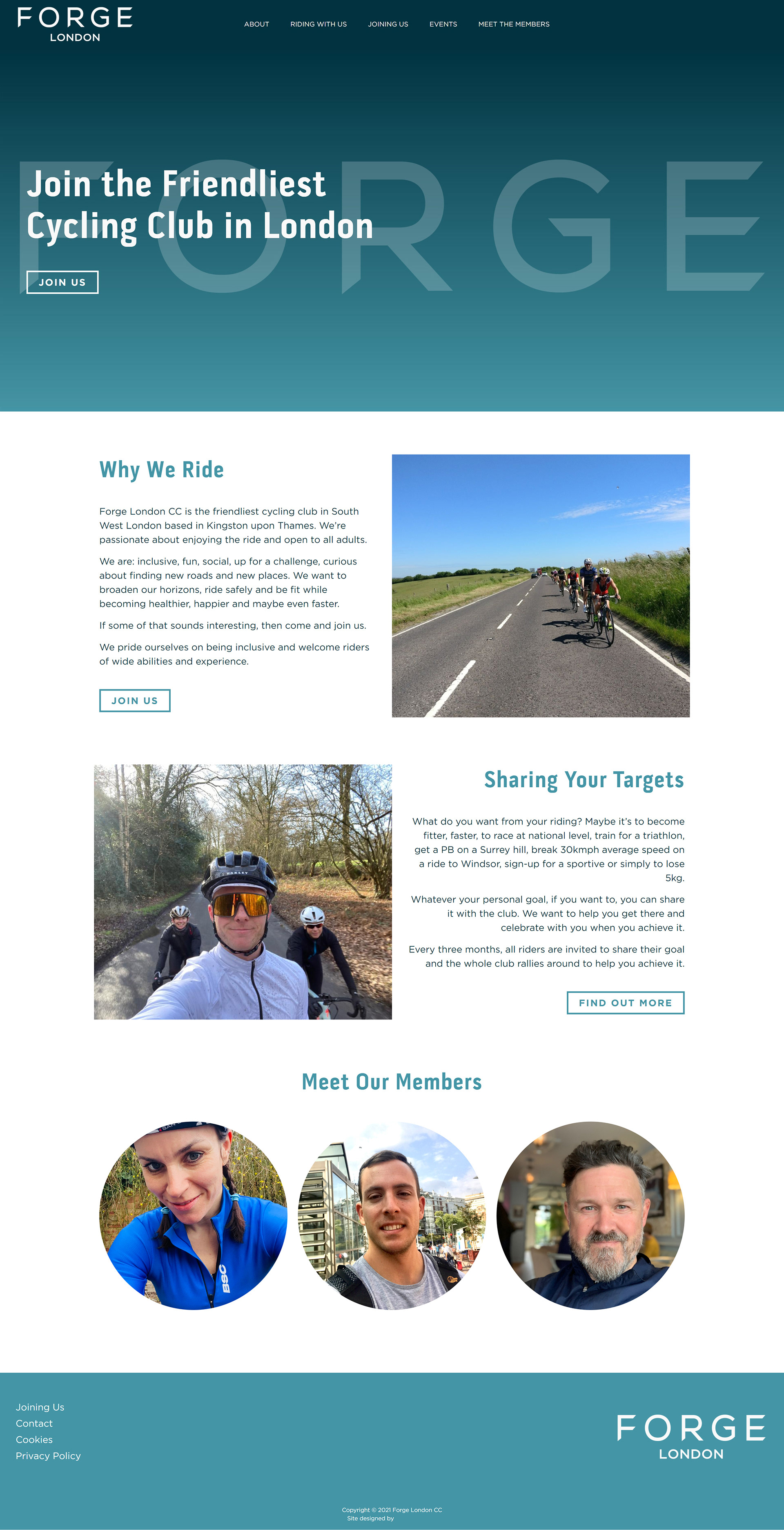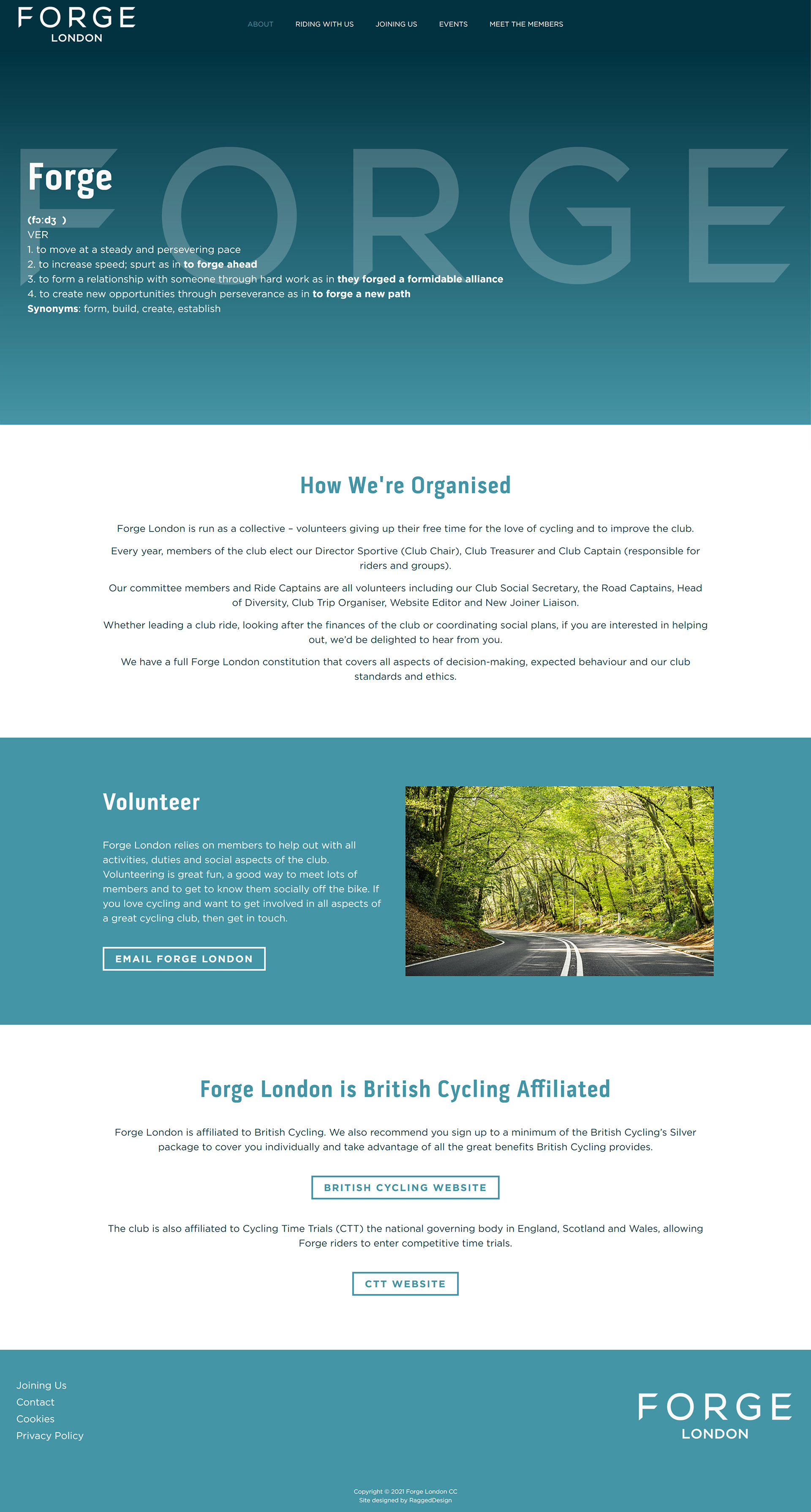 Design and build of a website for new cycling club, Forge London CC. The site was wireframed and prototyped in XD before being built using WordPress and Elementor.