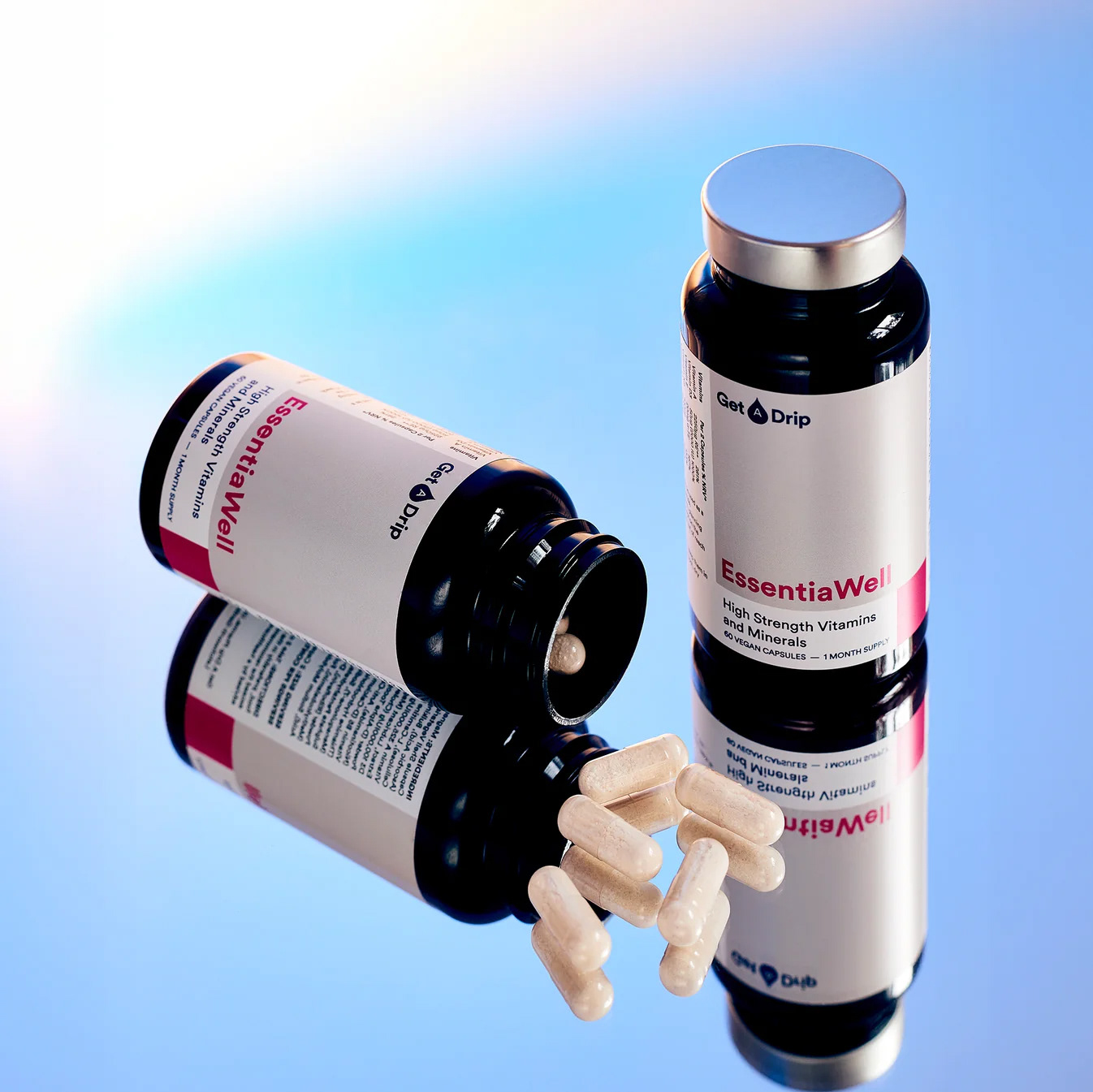 Design of labels for a new supplement product for returning client, Get a Drip.