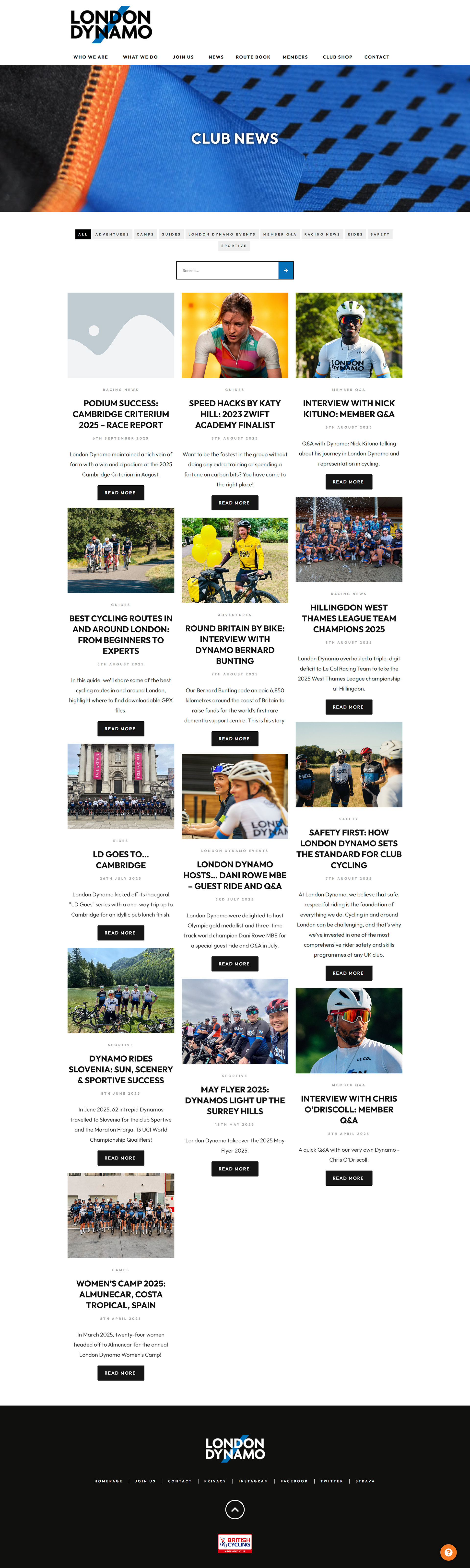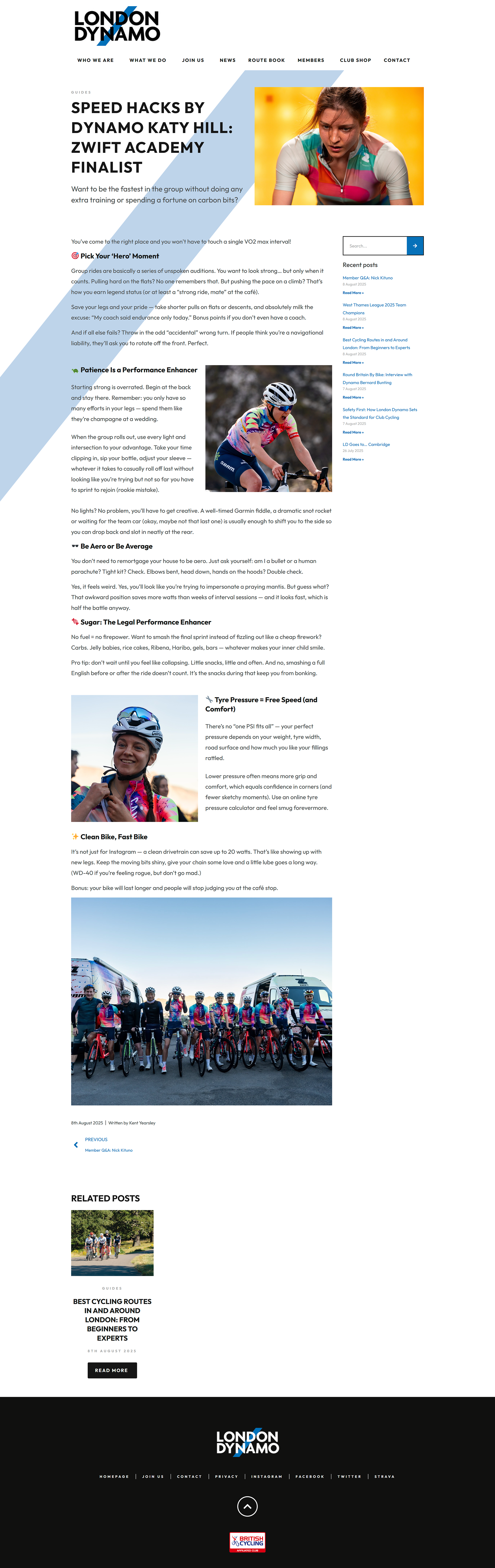 Design and build of a blog area for London-based cycling club, London Dynamo.